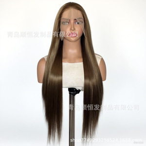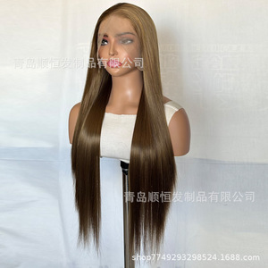 クロスボーダーウィッグ女性のロングヘアフロントレースゴールデンブラウンファッションロングストレートヘア合成繊維マット高温シルクフルヘッドギア