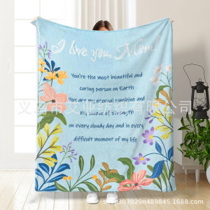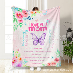 加绒加厚法兰绒印花毛毯 软舒适节日送礼英文送妈妈生日礼物盖毯