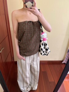 「ココナッツ リバー イブニング ブリーズ」チェック柄巾着チューブトップ ノースリーブ トップ レディース 25 夏 マルチウェア ストレート バケーション スカート