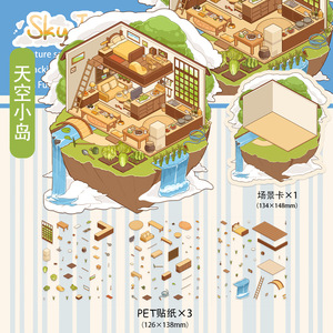 天空岛造景贴纸卡通3D微观世界贴画有趣diy手账场景玩具礼物