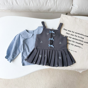 幼児 2025 秋の新刺繍サスペンダースカートスーツ女の赤ちゃんシャツリボンドレス 2 点セット