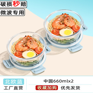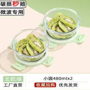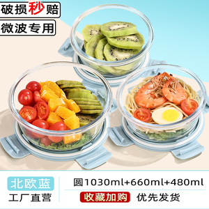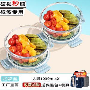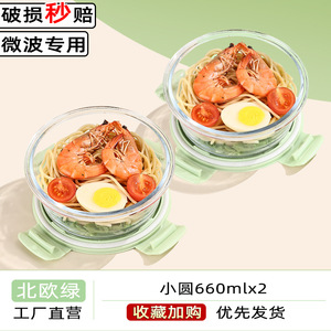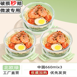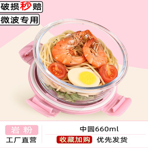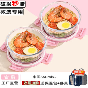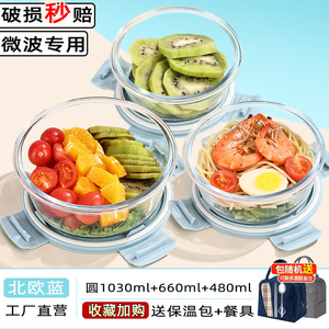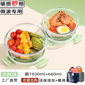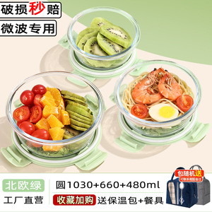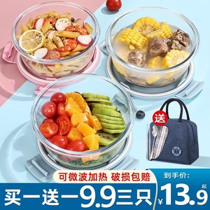 打包盒玻璃碗上班族专用碗带盖玻璃保鲜盒大容量可微波炉加热饭盒