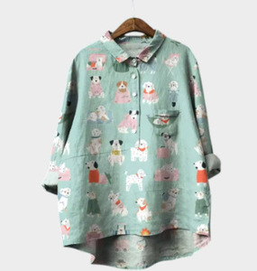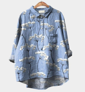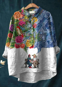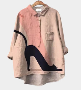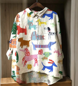 2025 クロスボーダー婦人服夏のアマゾンの新しいルーズカジュアル落書きプリントラペルシングルブレスト長袖シャツ