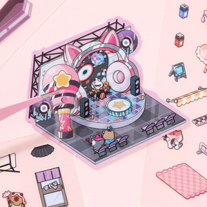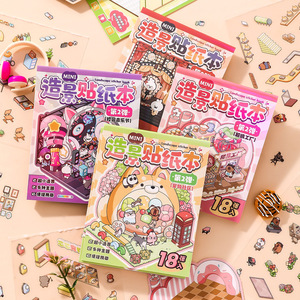 Xinmo ミニ造園ステッカーかわいい動物ミニチュアシーンステッカー 3D 立体キャビン子供の手作りコラージュ