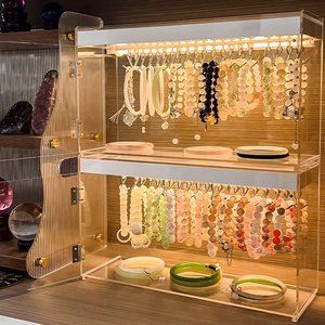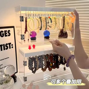 亚克力水晶手串收纳盒感应亮灯防尘文玩展示柜透明多层手链整理柜