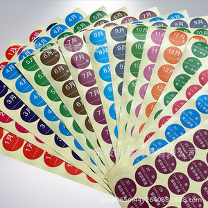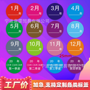 25mm丸型月ラベル カラーデジタルステッカー 季節分類ステッカー 1-12ヶ月 年日付ステッカー付き