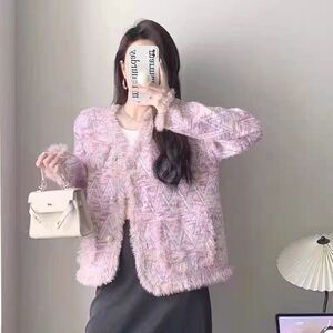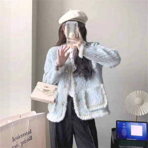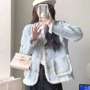 2025年秋冬新款圆领长袖小香风休闲百搭外套女装大码短款外搭外套