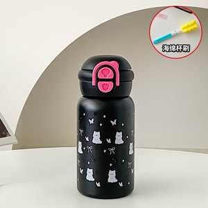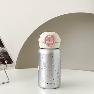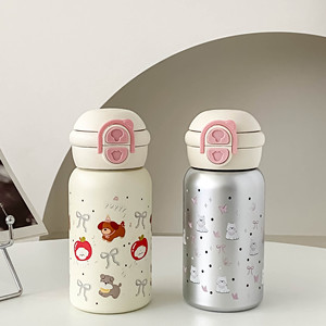 弹跳盖按压双饮不锈钢保温杯304女高颜值卡通可爱女随行办公水杯