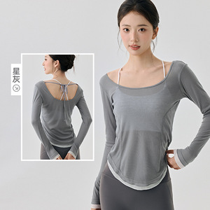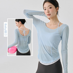 系带美背瑜伽罩衫长袖女士修身显瘦薄款透气瑜伽服罩衫