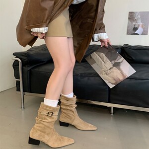 2025秋季新款时装靴女气质瘦瘦靴豹纹尖头细跟绒面高跟短靴子