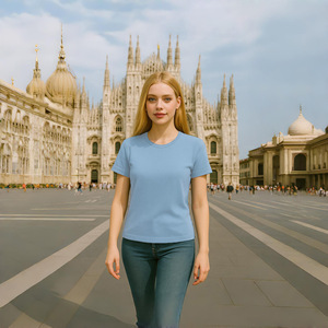 欧美跨境95%棉新款现货正肩女款休闲通勤简约纯色套头圆领T恤