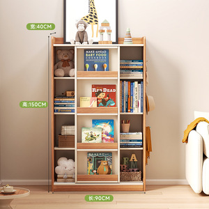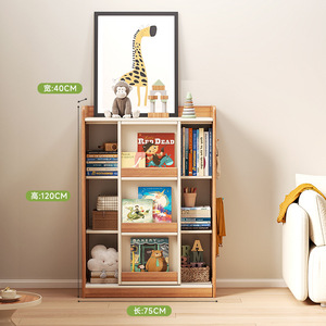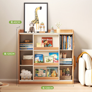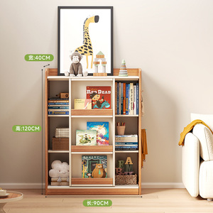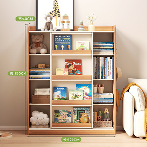 全实木儿童书柜落地书架一体靠墙阅读区多层架置物架储物柜