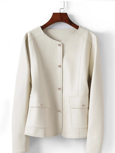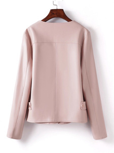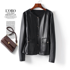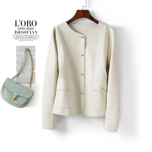 海宁皮夹克女真皮外套短款圆领粉色减龄绵羊皮秋冬新款皮衣小个子