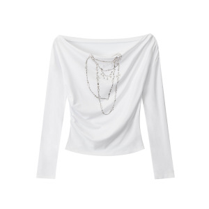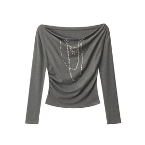 HeyHenry ネックレス アメリカン ワンラインカラー 長袖 Tシャツ レディース 秋 斜め肩 アメリカン スリムフィット ホットガール服