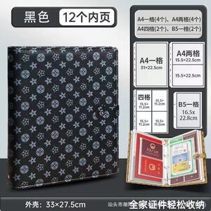 加大款黑色/家庭证件收纳磁扣(12页内芯)