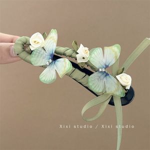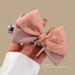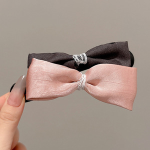 女性用コントラストカラーリボンダックビルヘアクリップ、ハイエンド2025年新作、後頭部用ワンラインクリップ、ヘアクリップ、ヘアアクセサリー