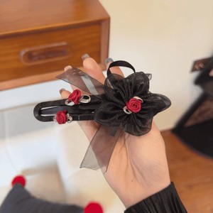 2#黒のガーゼリボン約12.5cm-クリップ11cm