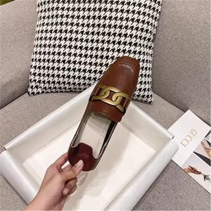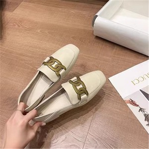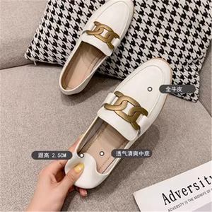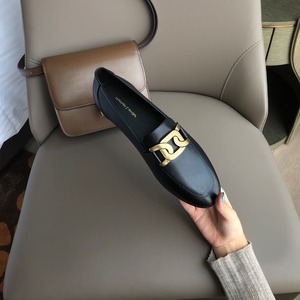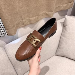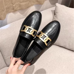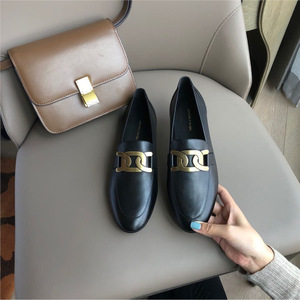 香港单鞋英伦风休闲小皮鞋女平底复古金属扣一脚蹬真皮软皮乐福鞋