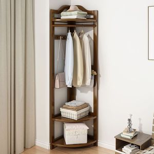 コーナーコートラック床置き寝室無垢材コーナーコートラックドア垂直屋内シンプルコートラック多機能