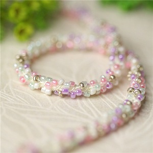手工编织辅料配件花色圆珠管珠连线细绳水晶亚克力玻璃米珠子花边