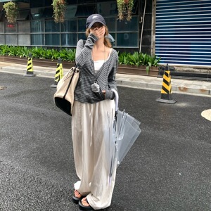 夏季薄款条纹拉链防晒开衫女2025新款百搭修身显瘦小众设计感外套