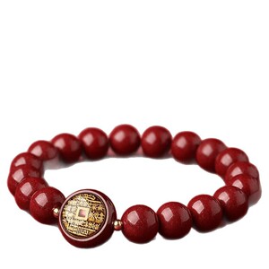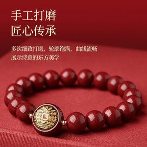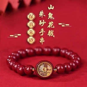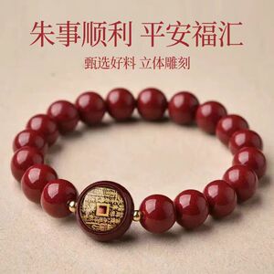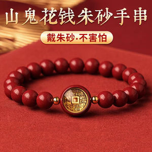 新中式朱砂山鬼花钱手串手链男女本命年手串圆珠单圈红手链生肖
