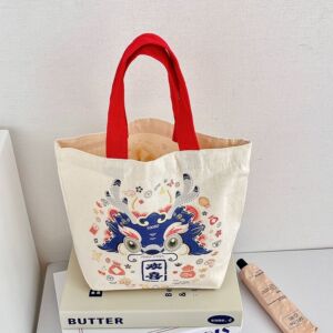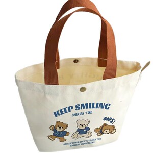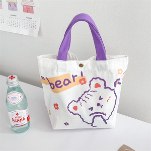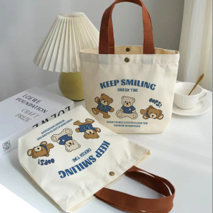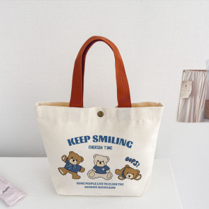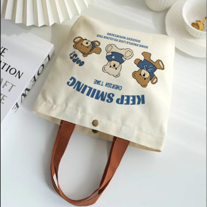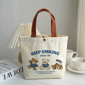 小熊帆布包百搭女学生饭盒袋手提袋小提袋上班族饭袋便当包小拎包