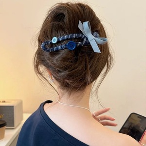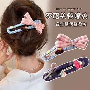 可爱撞色蝴蝶结发夹女2025新款高端后脑勺盘发鸭嘴夹大号一字发饰