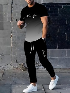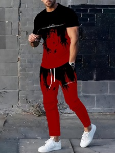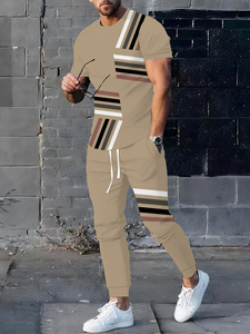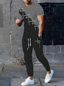 クロスボーダー TEMU 2025 夏秋メンズカジュアルファッションシンプルトレンド半袖ズボンスーツ 3D プリント