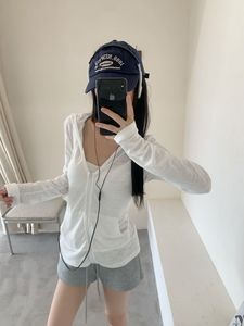 レイジースタイルスポーツスーツ白フード付き日焼け止め長袖ジャケット女性の夏のホットパンツカジュアルパンツショーツ 2 点セット