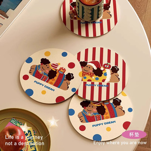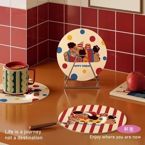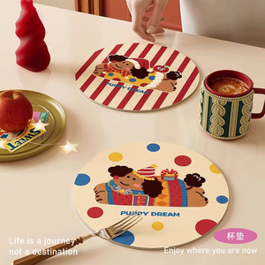 卡通麦琪杯垫吸水速干硅藻泥防滑垫家用耐脏易打理圆形咖啡机垫子