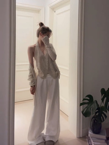 韓国風ホルターネックVネックシングルブレストノースリーブ着痩せインナー+おしゃれで万能な年齢軽減カジュアル日焼け止めカーディガン2点セット