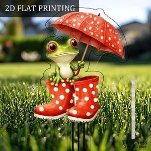 赤い傘をかぶったクロスボーダーのかわいいカエルアクリルガーデンステークは、鉢植えの風景庭やお祝いに適しています。