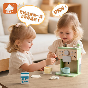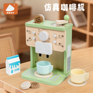 跨境儿童仿真过家家互动木制男孩女孩子木质厨房迷你咖啡机玩具