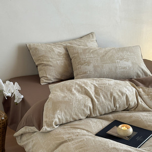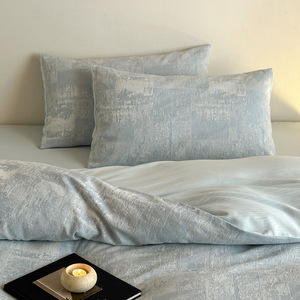 純綿 4 点セットライト高級ブルー織ジャカード綿 100 キルトカバーシーツハイエンド 2025 新しい寝具