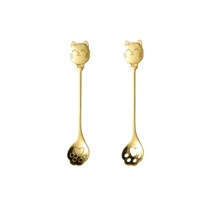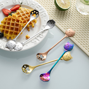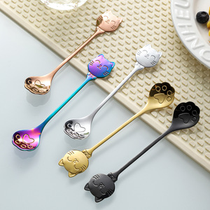不锈钢猫爪勺创意卡通咖啡搅拌勺甜品勺高颜值猫爪漏勺可爱调羹勺