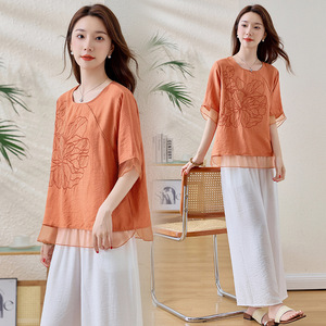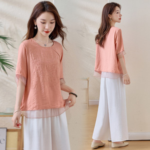 新中式套装女2025夏季新款高级感气质显瘦上衣阔腿裤两件套MM2607