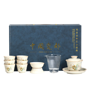 新しい草木灰ティーポットティーセット、見栄えが良く実用的なカンフーティーセット、高級ギフトボックス、ビジネスギフト