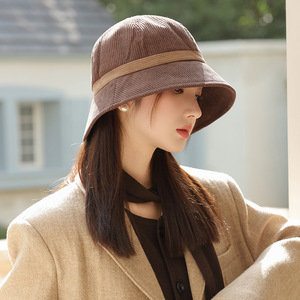 女性用の秋冬のファッショナブルな帽子、カジュアルで多用途なコーデュロイフィッシャーマンハット、レトロな暖かい盆地帽子、大きな頭囲、顔が小さく見える