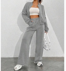 2025 新しいトレンドファッションカジュアル長袖ジッパーカーディガンスウェットシャツハイウエストルーズレースアップパンツスーツ 2 点セット