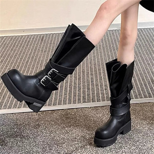 ホットガール厚底パリブーツ女性のための 2025 新デザインニッチ大型チューブオートバイライダーブーツ