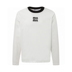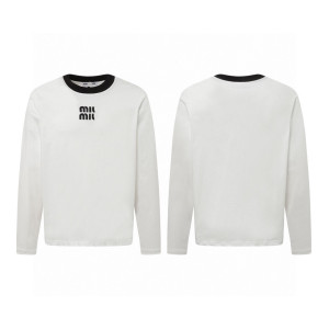 正确版原标MIU缪家字母LOGO贴布刺绣圆领宽松长袖T恤男女打底衫