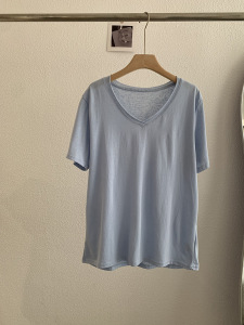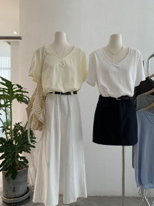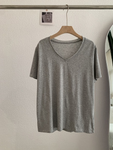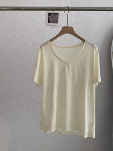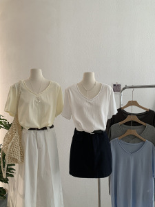 Omalai リラックススノーフレークテクスチャカールVネック半袖ルーズTシャツトップスルーズスリミング無地4103