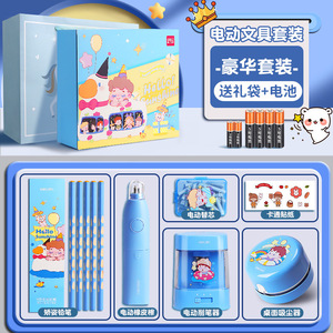 【フレッシュブルー】電動文具セット ギフトボックス