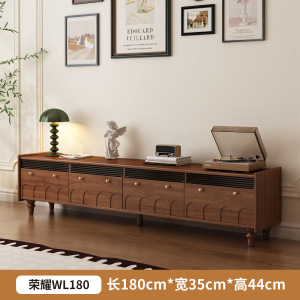 全实木电视柜中古风客厅家用2025新款收纳柜一体落地复古储物边柜