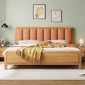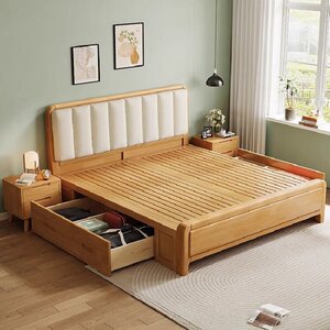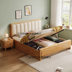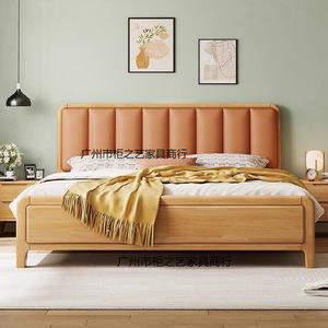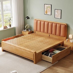 简约现代实木床双人1.8米主卧大双人床家用小户型储物软包实木床