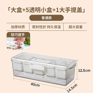 跨境家用厨房分格盒创意塑料托盘水果沙拉盘5格一体冰镇盒调味瓶
