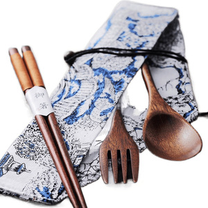 ホット販売箸パーソナルシングルポータブルボックス無垢材旅行箸学生食器ポータブル箸とスプーン 3 点セット