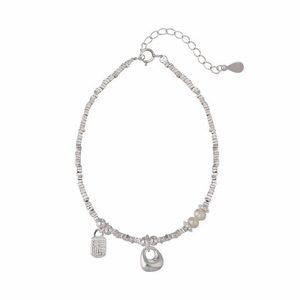 轻奢小胖福碎银子珍珠手链女新中式国风福牌温婉气质手饰小众百搭