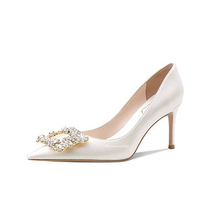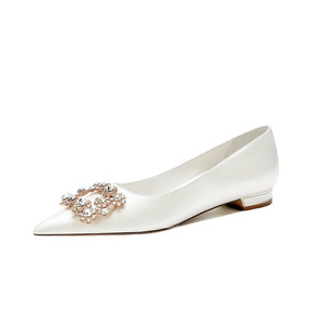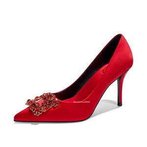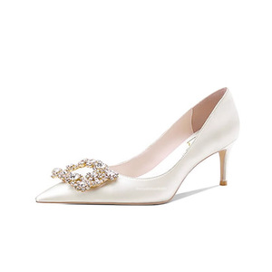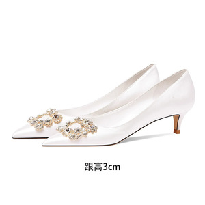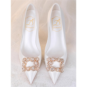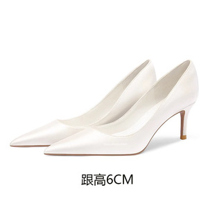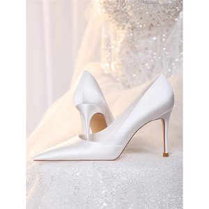 香港スタイルのサテンハイヒールの女性の 2025 春と秋の新しいウェディングドレスブライダルシューズフレンチシングルシューズドレスブライドメイドシューズ